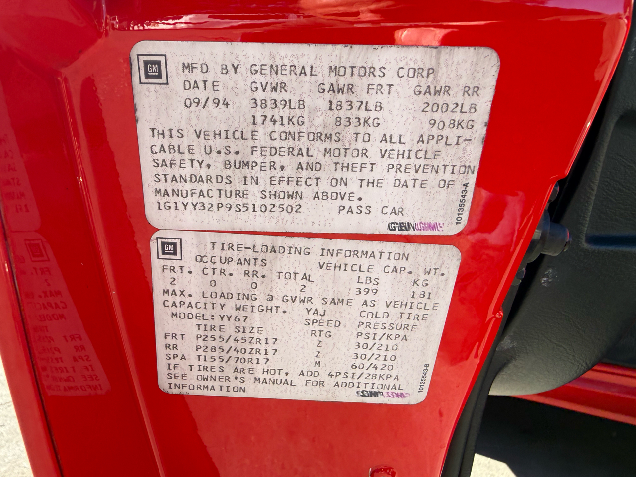 Vehicle Inquiry for 1995 Chevrolet Corvette Standard 1LT Convertible Auto